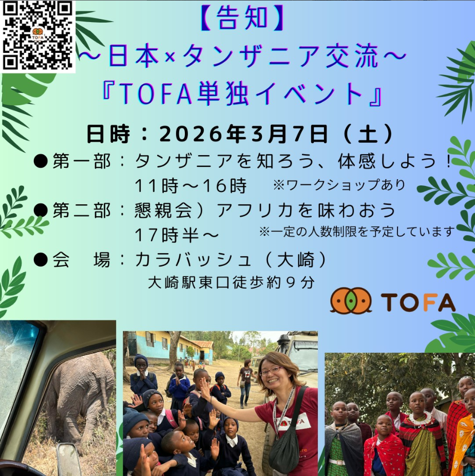 日本とタンザニアをつなぐNGO・TOFAによる活動紹介、ワークショップなど。